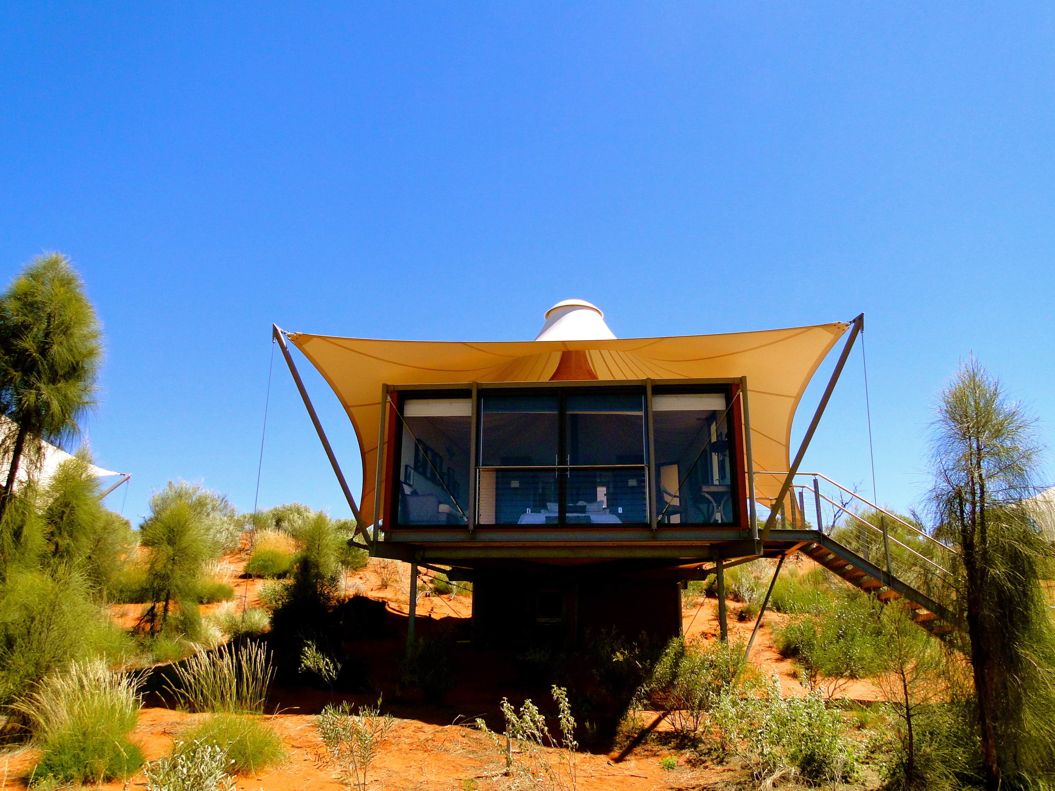 The memorable part of our arrival however was being able to see Uluru from the plane….From a vast emptiness of nothing rose a beautiful red rock glistening in the sunlight and a bit of our exhaustion, just a bit , slowly reduced! Voyages owns all the resorts in Ayers Rock and you haveback packing grounds, dormitories, 3 and 5 star hotels and then you have LONGITUDE 131– the reason why we made the trip to Uluru in the first place. Aditya and I have always traveled to create remarkable experiences and incredible memories and this hotel had been on our MUST STAY list for a while! And it was worth it! The packages they offer are usually all inclusive with alcohol, meals and even tours included! These are most definitely worth it, because the food is fabulous and the tours are private and wonderful !