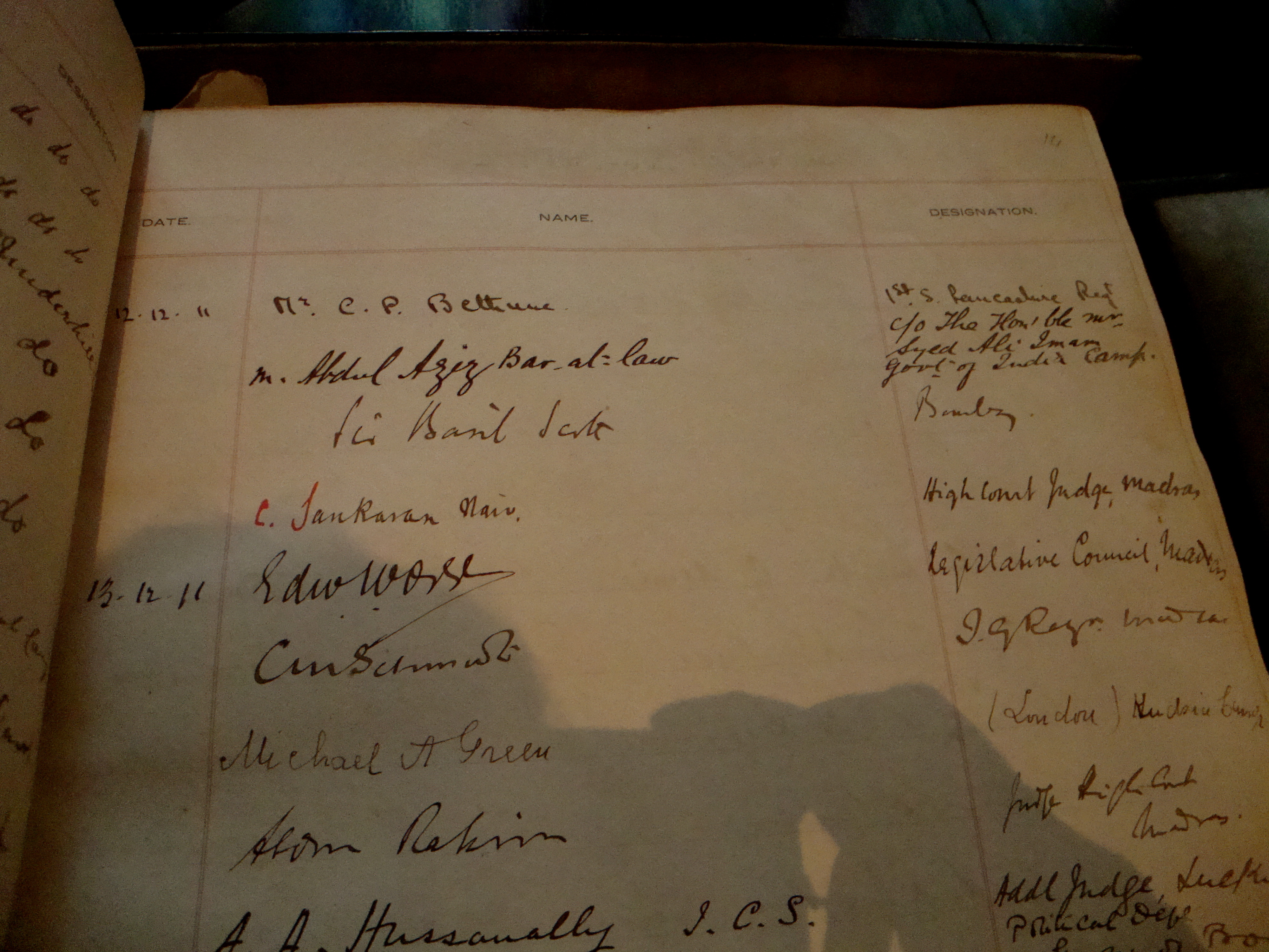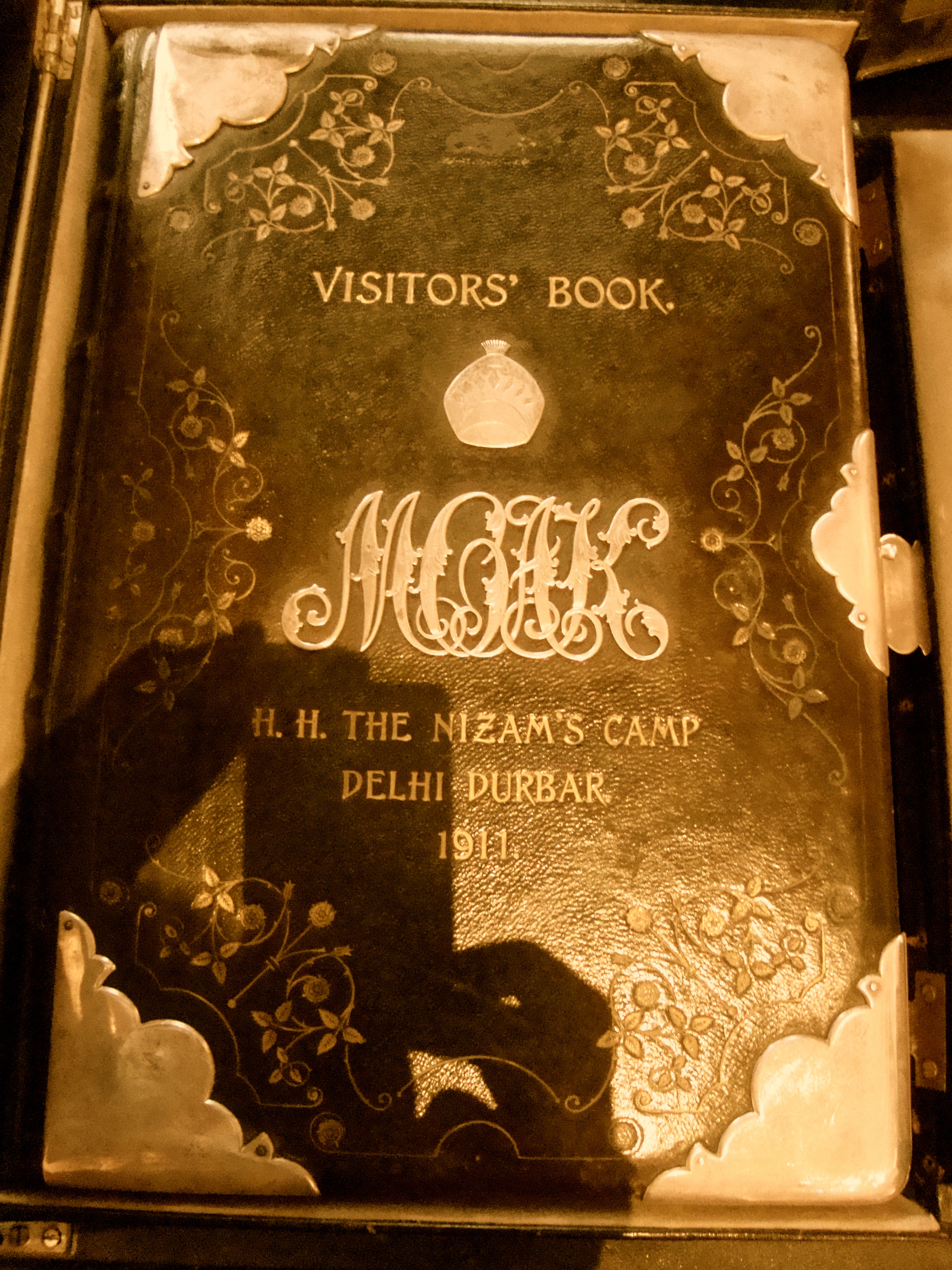 And then it was off to the spa- the Jiva spa calmed me down and relaxed my aches and pains and after a quick dip in the small yet perfect pool, it was off to take a champagne tour of this iconic, historical hotel!The stories were interesting and funny. The rooms were well preserved and iconic. Every wall had a story. Every room had history. The Palace had been commissioned by Sir Nawab Vikar-Ul Umra, a Hyderabadi nobleman but caught the eye of the seventh Nizam of Hyderabad, Mahbub Ali Pasha, Sir Vikar’s brother-in-law, and Sir Vikar had no choice but to offer the Palace as a gift or ‘nazar’ to the Nizam! Later it was used as a guest house to several royal dignitaries heads of state and my very own Great-Great-Grandfather a member of the Viceroy’s Privy Council and a former President of the indian National Congress ( then a High Court Judge) had been a guest years earlier and it was absolutely wonderful to be able to see his signature (the one in red!) in the iconic comment book. Years ago, he had stood where we stood today !