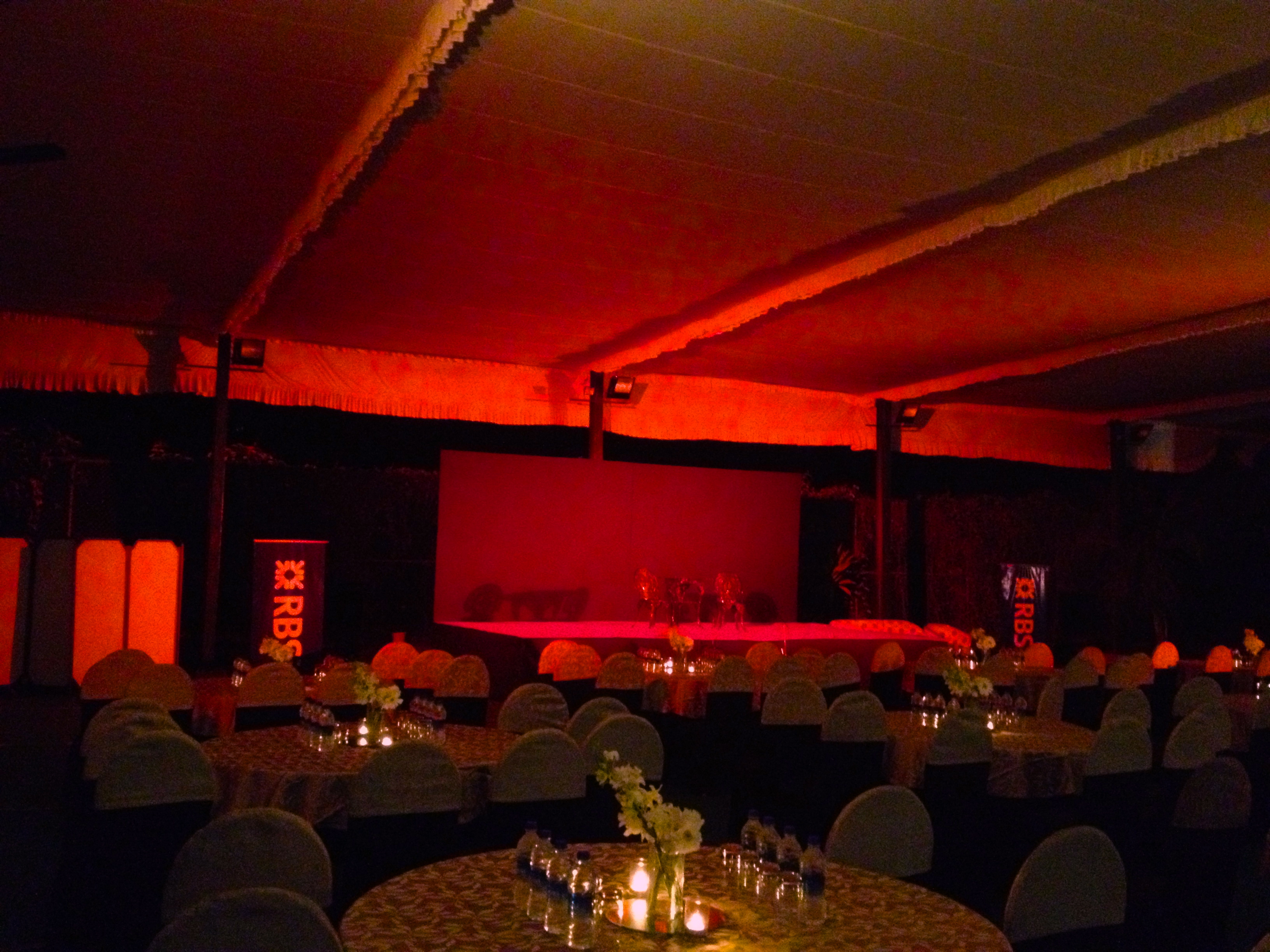 The lawns had been done up in the last year and were now divided in to the main lawns and the pool lawns and 2 functions could quite easily exist simultaneously .The beautifully manicured lawns were being done for a wedding the following day and our area was perfectly covered insulating the sound with a beautiful stage. All this was already set.