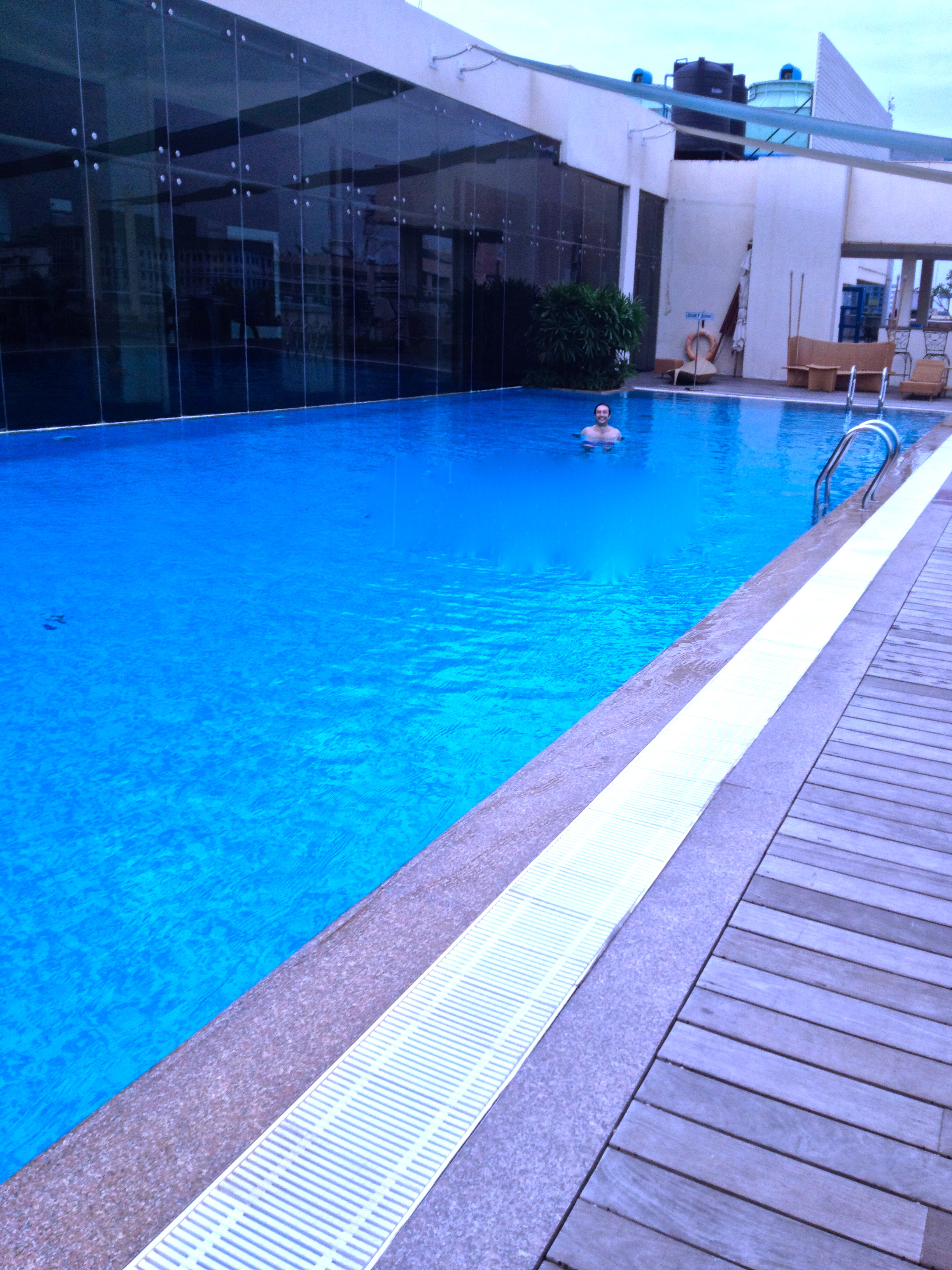 Go up to the swimming pool and enjoy taking laps across the pool after a quick exercise at the huge , very well equipped gym ; it’s wonderful to enjoy a quick cuppa and watch the city as it slowly starts winding down. Lights come on , the sun goes down and in this mad, mad ,frenetic metro you are left feeling a funny,warm sense of peace!