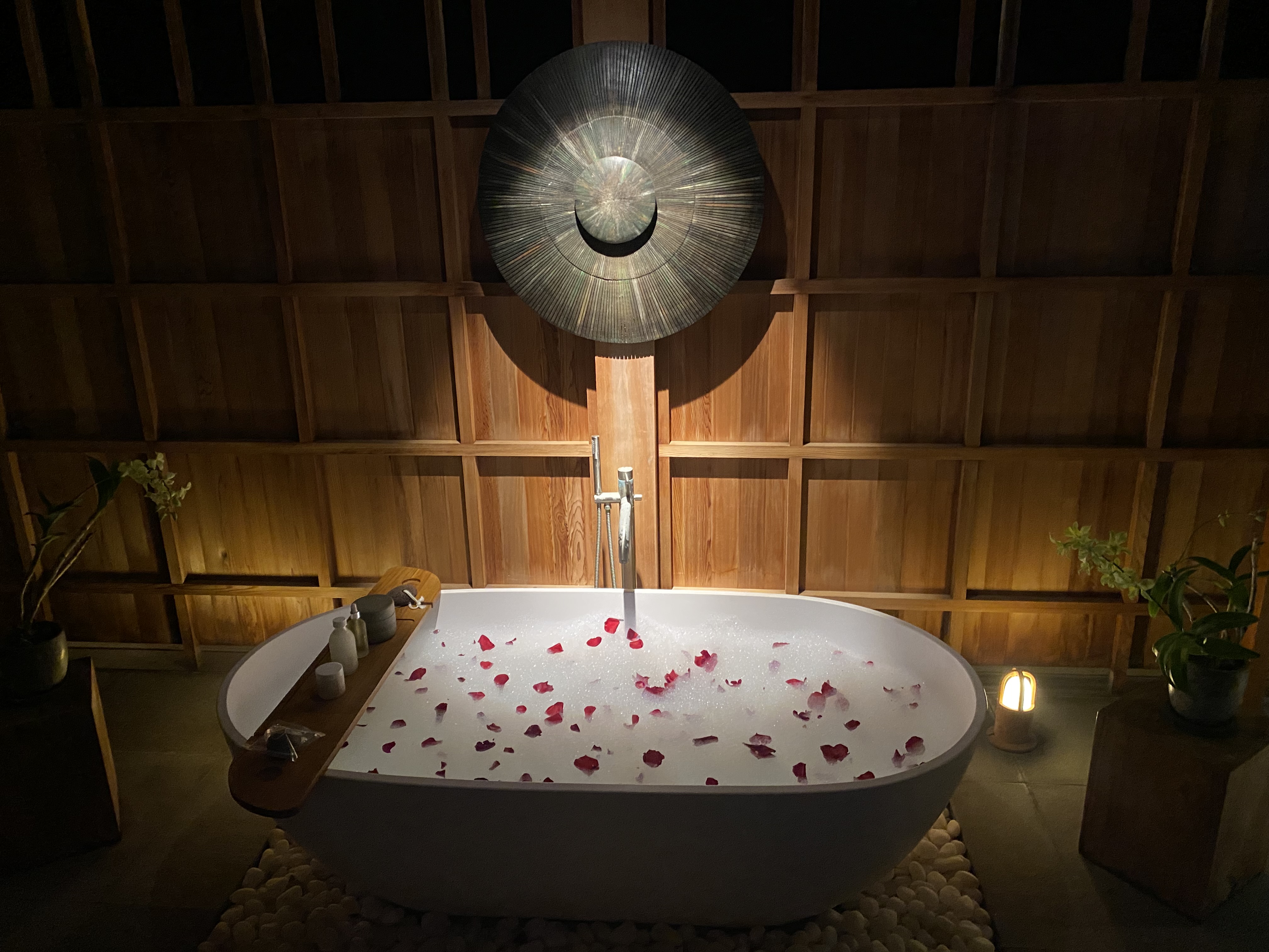 Post the walk, a beautiful bath had been arranged in the outdoor gold tub and I relaxed and enjoyed the bath getting ready for dinner.