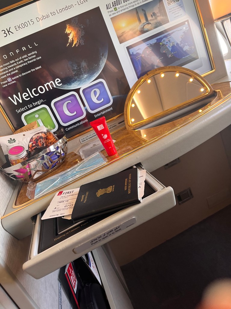 Posted on April 12, 2023, in Air Travel, Emirates, Personal and tagged aditya, airplane, allergy-free, amenities, bathroom, beds, Bvlgari, Bvlgari amenities, Byredo, charging points, choice, coffee, comfortable beds, crew, dates, divya, DND, dream travel experience., Emirates, entrees, fine dining, First Class, first class service, hitkari, ice cream, inflight entertainment, inflight experience, iPad, light, luxury travel, mattress, menu, mirrors, notebook, palat, pen, plated, popcorn, review, seats, service, shower, shower on a plane, skincare, suites, travel, travel blog, travel comfortably, travel goals, treat tray, vanity case, wet bar, With. Bookmark the permalink. 2 Comments.