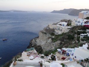 On the side of a cliff , the hotel overlooked the Caldera, the  cauldron like volcanic structure surrounded by the ocean!The rooms were tasteful, large and ours had the stunning view of the bluest, blue sea! It was perfect!-a quiet , serene getaway to nothingness!