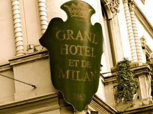 We arrived in Milan. We were staying at the glorious Grand Hotel et de Milan, a part of the Leading hotels of the World in Montenapoleone – the heart of the fashionable district of what is arguably the most fashionable city in the world and a stones throw away from the glorious Duomo. Now the Duomo is a Cathedral and you will see many in Italy though none as glorious as the one in Milan. We arrived late in the evening at 5 p.m. and it took us 45 mins or so from Malpensa Airport to our hotel. The scenery changed from stark, to more modern and then to glorious , old heritage buildings and I was delighted to see our hotel was one of these fabulous, fashionable structures!