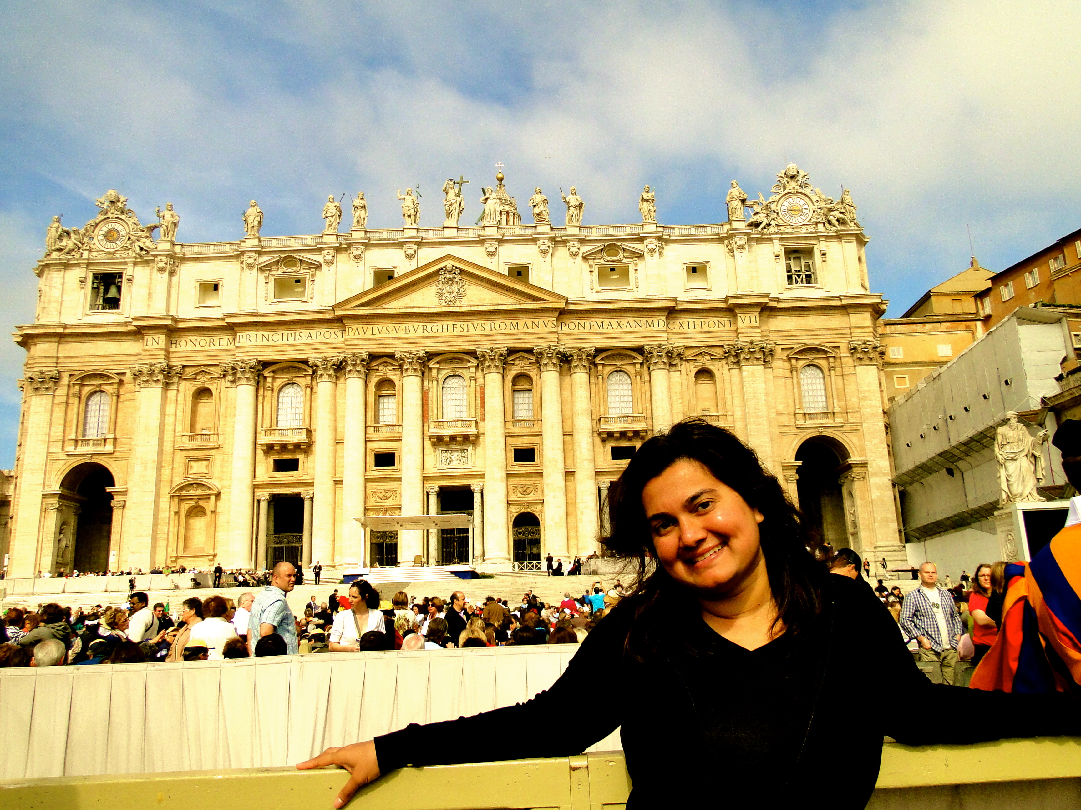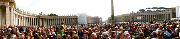 From the drop off point you travel by foot with the scores of visitors towards St. Peter’s Basilica and then you go through minimum security and rush to find a seat!