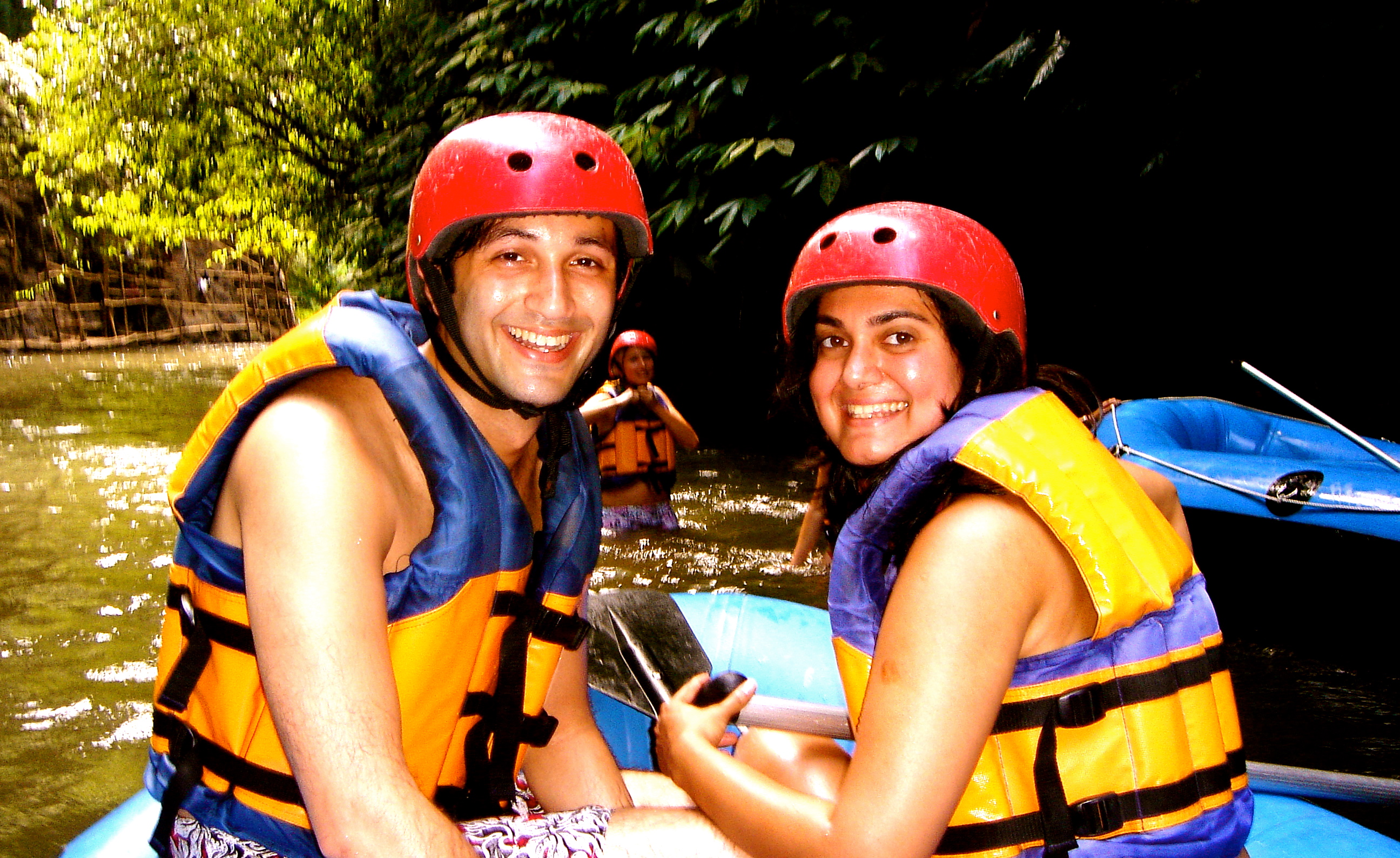 And then we discovered white water rafting. We were picked up with 3 other couples and taken to the Ayung River and then we had to walk down ridiculously steep steps. A quick change and even quicker set of instructions later we were off on our own learning how to deal with the rapids and weaving our way through the river. At one point, we were allowed to get off and swim and the cool water after a hard bit of rowing was so refreshing we didn’t want to get out! After the rowing, you are taken for a quick bite to eat and something to drink and packed into the bus again and sent back to the hotel. What I really loved was a group of Japanese tourists who had used the river as a treasure hunt-team building experience. Different teams would rush to points on a map and pick up clues. Fun, exhilarating and a huge team building experience and suddenly I wished we had come with the whole family. Nothing like a good , fun competition to make a fun day even better!