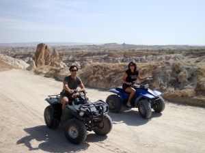 breakfast delight with some bubbly made the morning perfect! After that Aditya and I decided to do some exploring of our own so off we headed via ATV. Now anyone who knows me or knows my driving knows that an All Terrain vehicle is probably the safest thing for me to drive except when your driving over cliffs and driving down steep roads. I almost lost balance of the heavy vehicle more than once trying to keep up with our enthusiastic guide…. but luckily for me that despite a few near misses and one where the ATV had a wheel over the edge…I survived! This was the coolest way to explore Cappadocia and after dropping our guide back to the town aditya and I continued exploring the narrow lanes and numerous caves ourselves! Stopping every so often for an incredible photograph this is the ONLY way to see Cappadocia and is an absolute MUST DO!