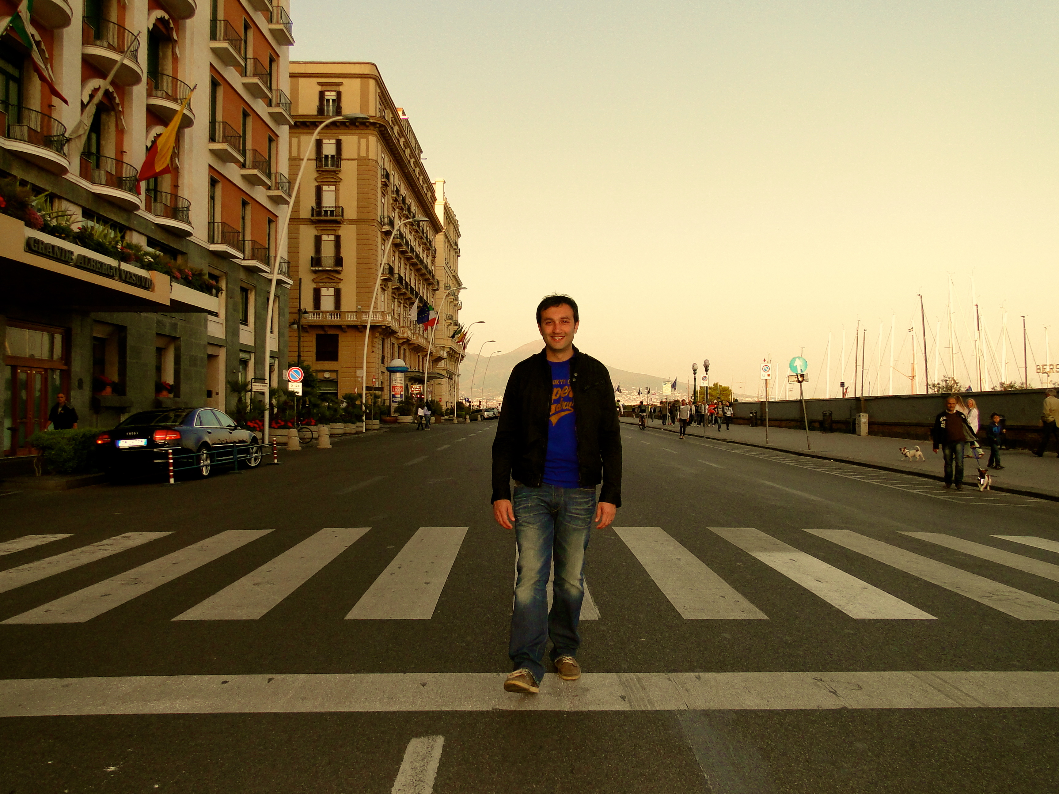 wonderfully large suites. There are also some remarkable photographs of Humphrey Bogart and Grace Kelley, Woody Allen and Luciano Pavarotti to name a few that grace the walls of this charming hotel.The hotel is on the sea front as a no-car zone unless of course you are a guest and need to get dropped or picked up from the hotel. At all other times and most specially in the evenings the huge road in front of the hotel and in front of the bay is filled with children, balloons, bicycles and joggers. There are small cafes across from the hotel and they are frequented by young couples holding hands , gazing soulfully into each others eyes. But then again , living among such beauty it’s easy to fall in love again!
